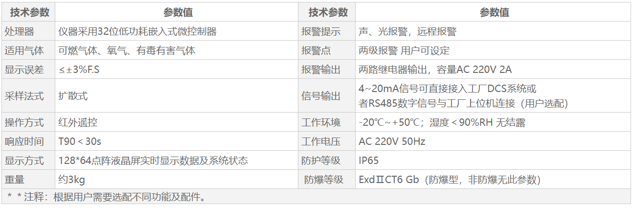 探測(cè)器為自由擴(kuò)散方式檢測(cè)氣體濃度,采用進(jìn)口催化燃燒式傳感器,具有很好的靈敏度和出色的重復(fù)性;大屏幕液晶屏實(shí)時(shí)顯示泄漏氣體的濃度值,超過(guò)預(yù)設(shè)報(bào)警點(diǎn)立即啟動(dòng)聲光報(bào)警信號(hào)或驅(qū)動(dòng)排風(fēng)系統(tǒng);國(guó)際標(biāo)準(zhǔn)(4~20)mA信號(hào)可直接接入工廠(chǎng)DCS系統(tǒng),RS485數(shù)字信號(hào)與工廠(chǎng)上位機(jī)連接;儀器采用嵌入式微控制技術(shù),全中文菜單操作簡(jiǎn)單,功能齊全,可靠性高,整機(jī)性能可靠。